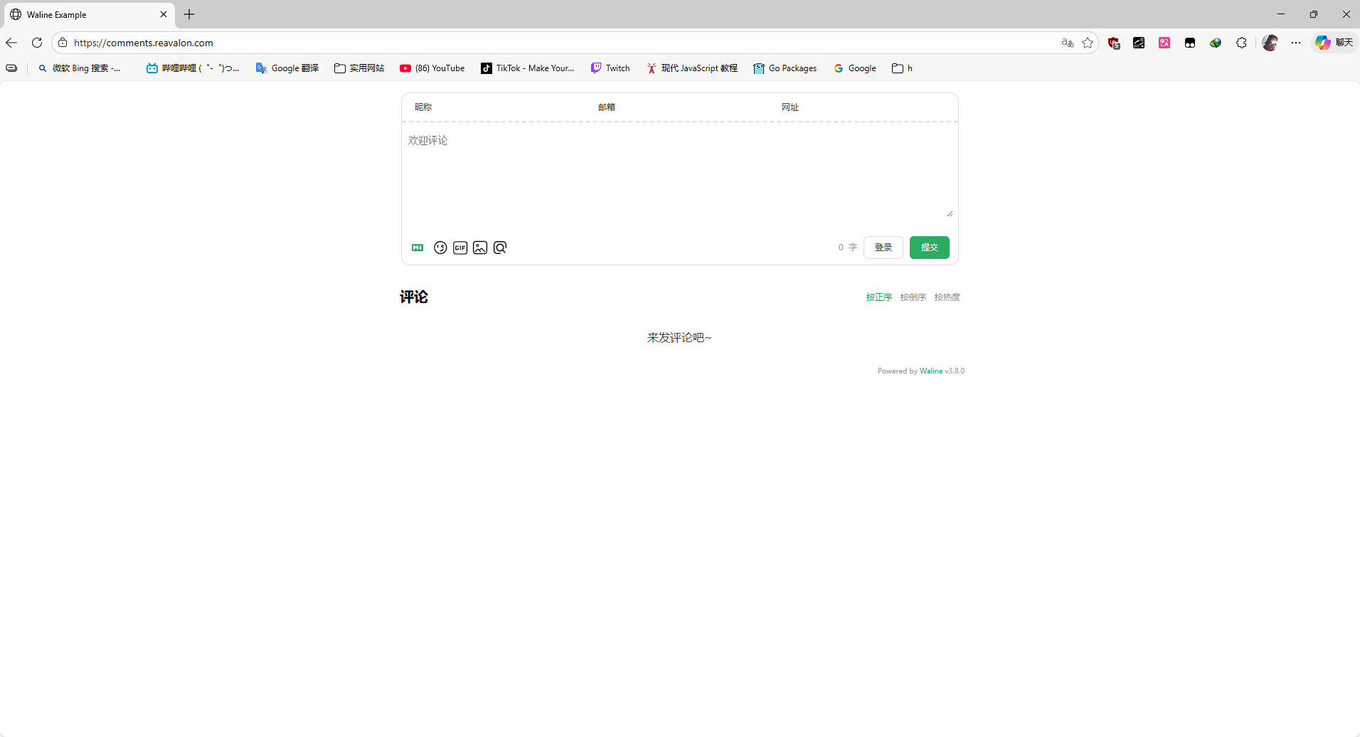 打开 https://comments.reavalon.com,首次访问应该是这个样子